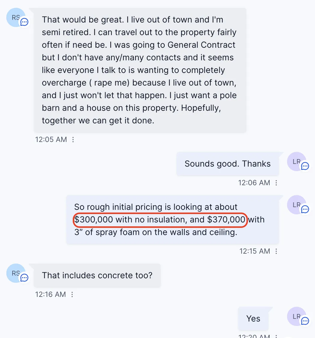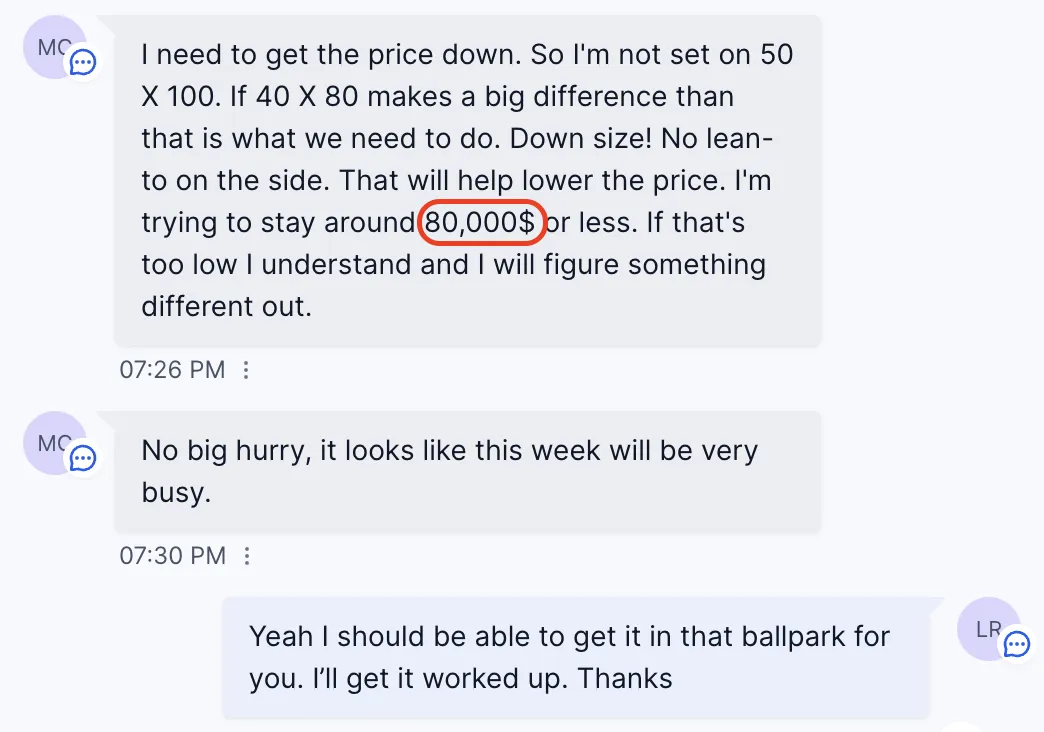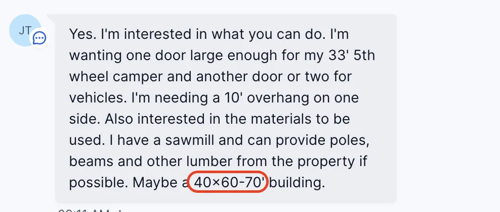 Service Radius & Build Types How far you're willing to travel for a quote (typically 30–75+ miles) and which build types you want to prioritize — barndominiums, custom pole barns, shouses, ag, or mix.